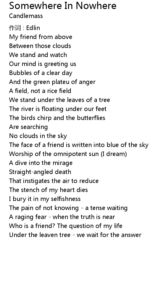 | Song | Somewhere In Nowhere |