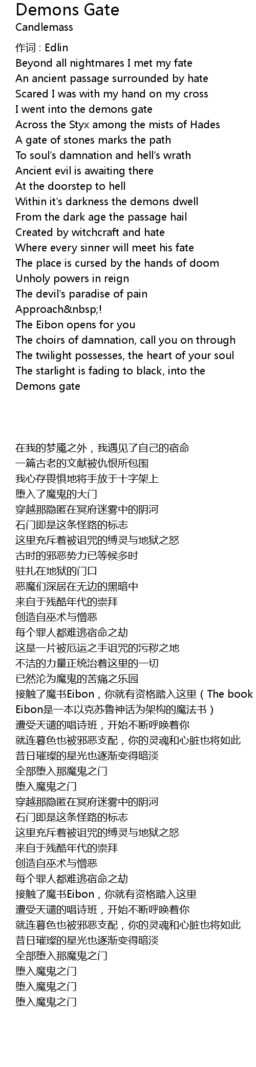 | Song | Demons Gate |