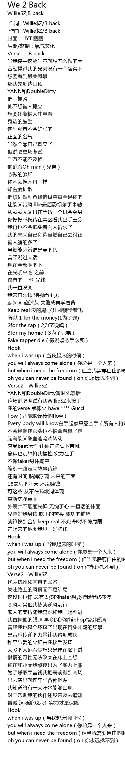 | [00:00.000] | 作词 : Willie$Z/B back |