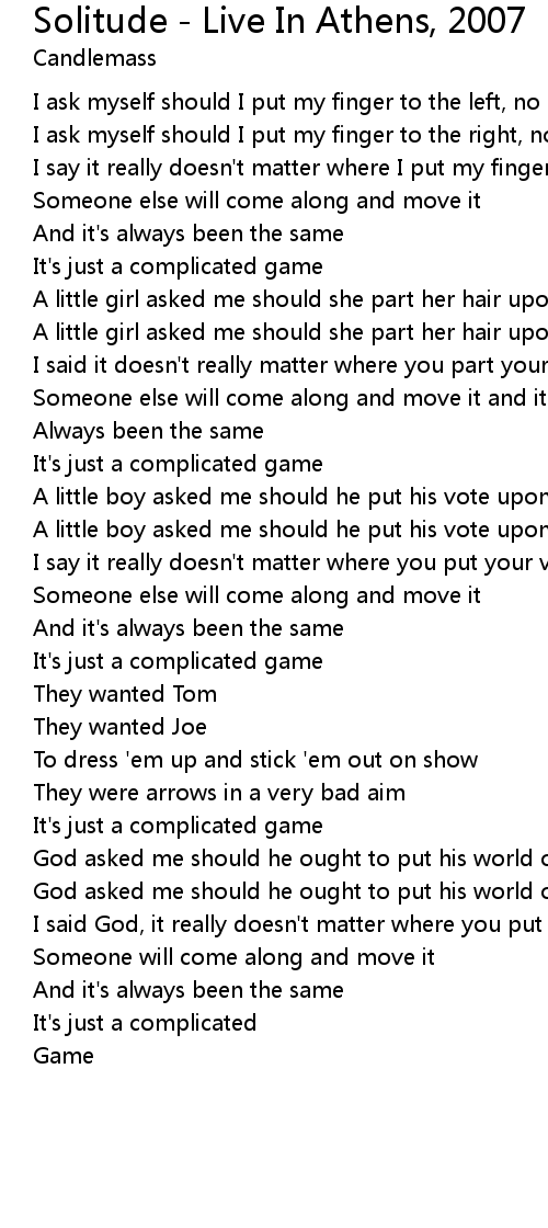 Solitude - Live In Athens, 2007 Lyrics