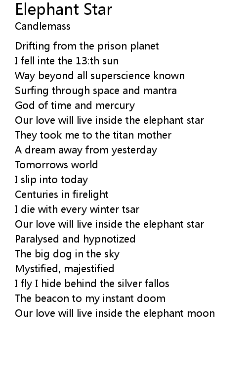 Our love will live inside the elephant star |