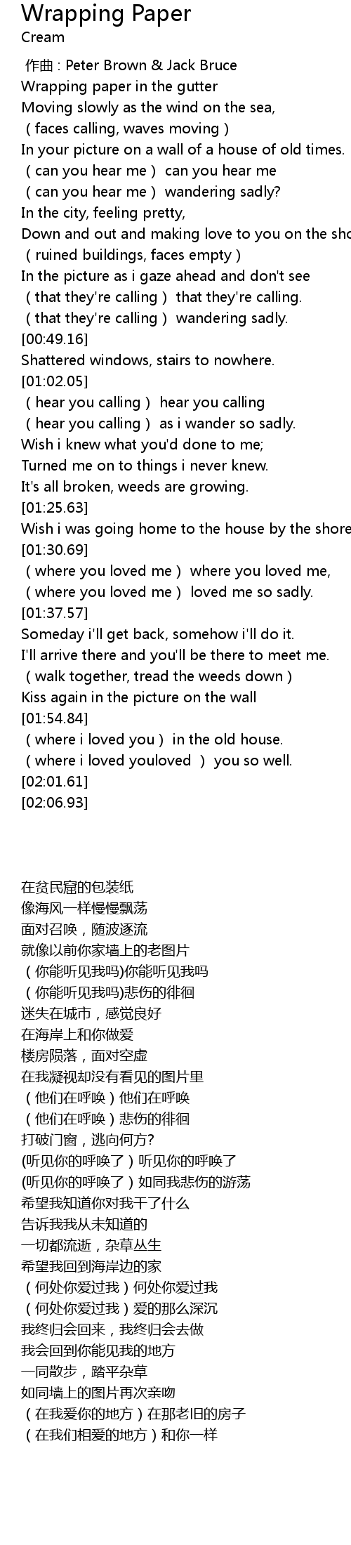 | [00:00.00] | 作曲 : Peter Brown & Jack Bruce |