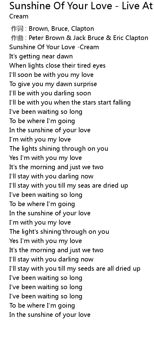 | [00:01.321] | Sunshine Of Your Love Cream |