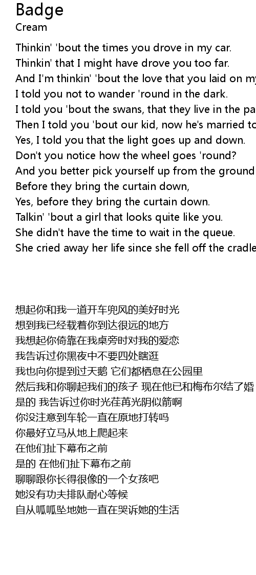 | [00:10.59] | Thinkin' 'bout the times you drove in my car. |