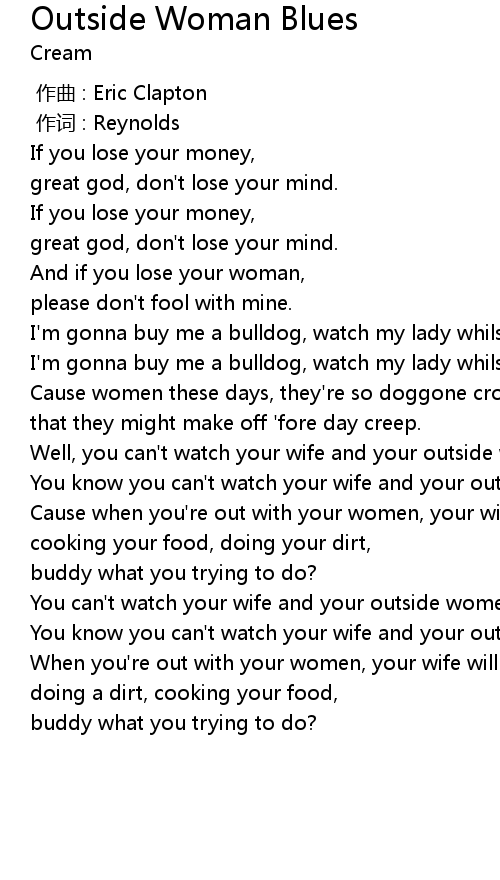 | [01:09.40] | You know you can' t watch your wife and your outside womens, too. |