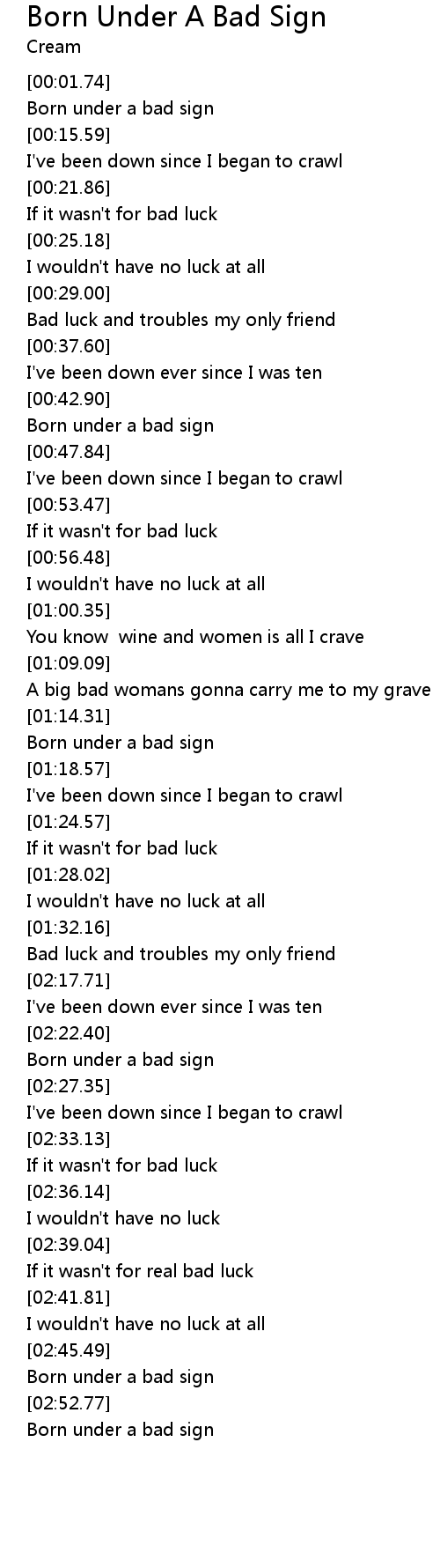 Born under a bad sign |