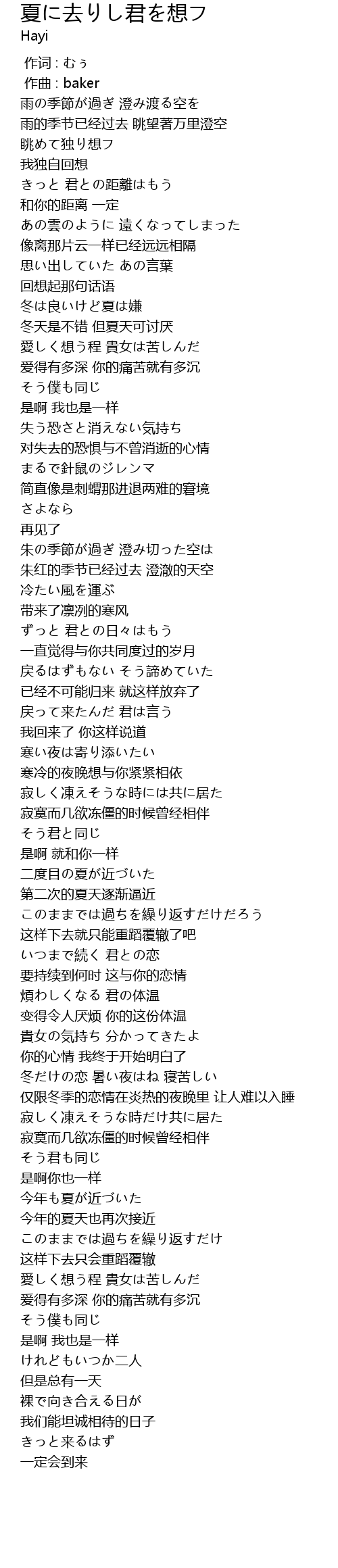 | [01:50.381] | 冬だけの恋 暑い夜はね 寝苦しい |