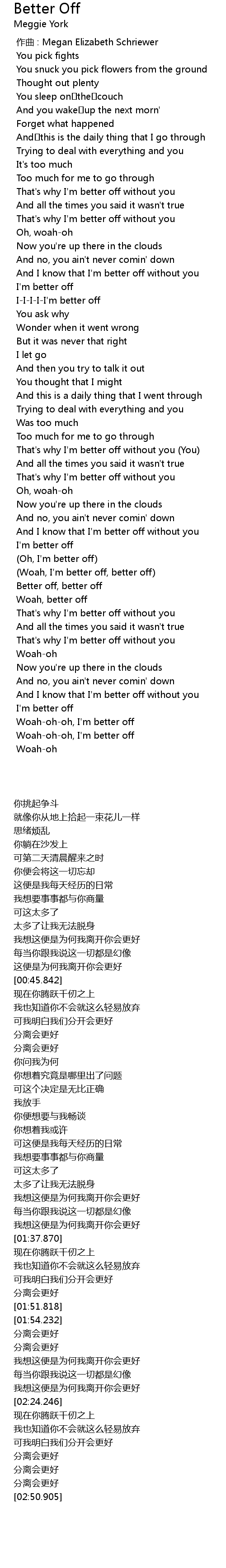 | [00:41.493] | That' s why I' m better off without you |