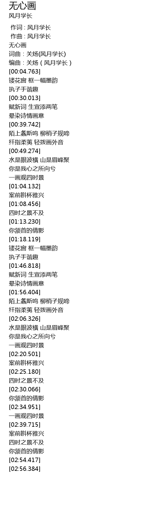 | [00:01.527] | wú xīn huà |