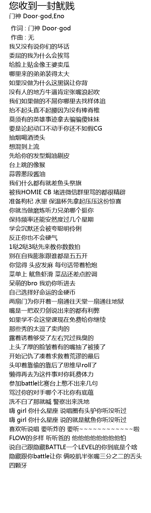 | Album | 您收到一封鱿贱(DISS鱿鱼) |