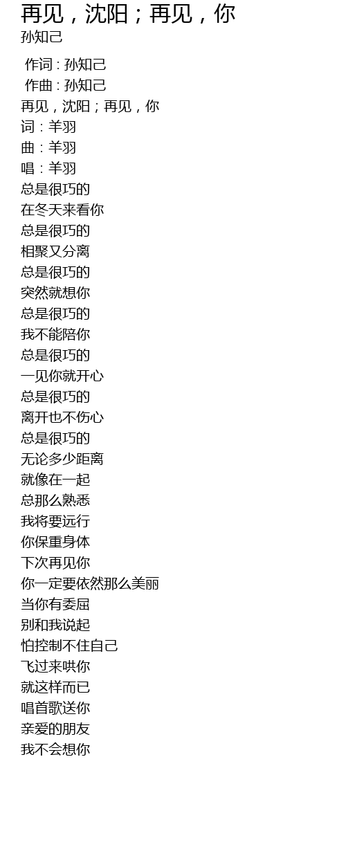 | [00:04.627] | 再见,沈阳;再见,你 |