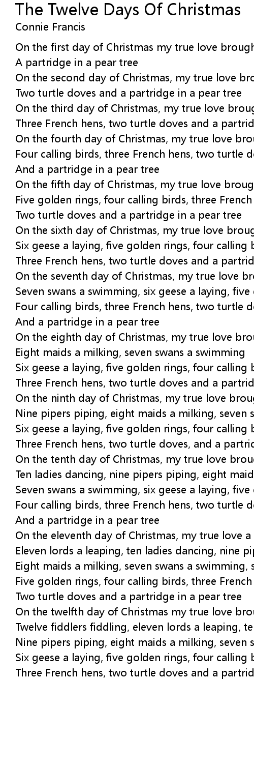 On the twelfth day of Christmas my true love brought to me |