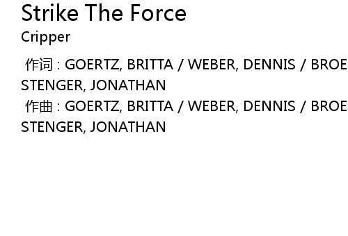 | [00:00.000] | 作词 : GOERTZ, BRITTA / WEBER, DENNIS / BROEHENHORST, CHRISTIAN / STENGER, JONATHAN |