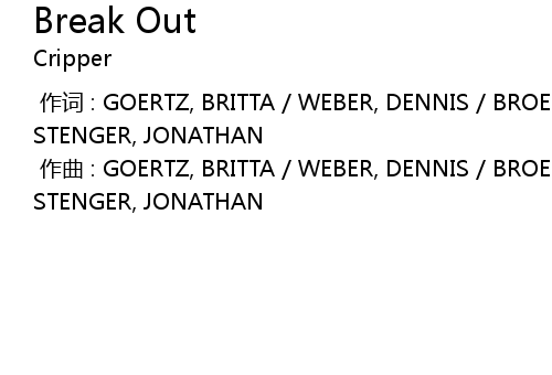 | [00:00.000] | 作词 : GOERTZ, BRITTA / WEBER, DENNIS / BROEHENHORST, CHRISTIAN / STENGER, JONATHAN |