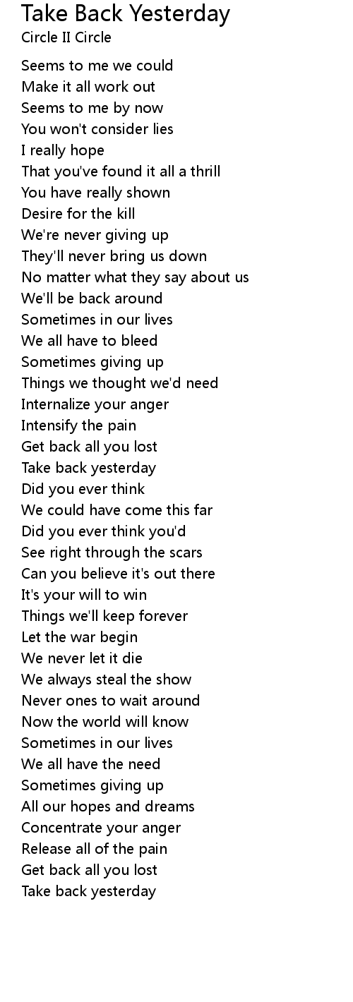 Take back yesterday |