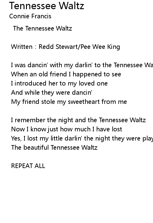 | I was dancin' with my darlin' to the Tennessee Waltz | |