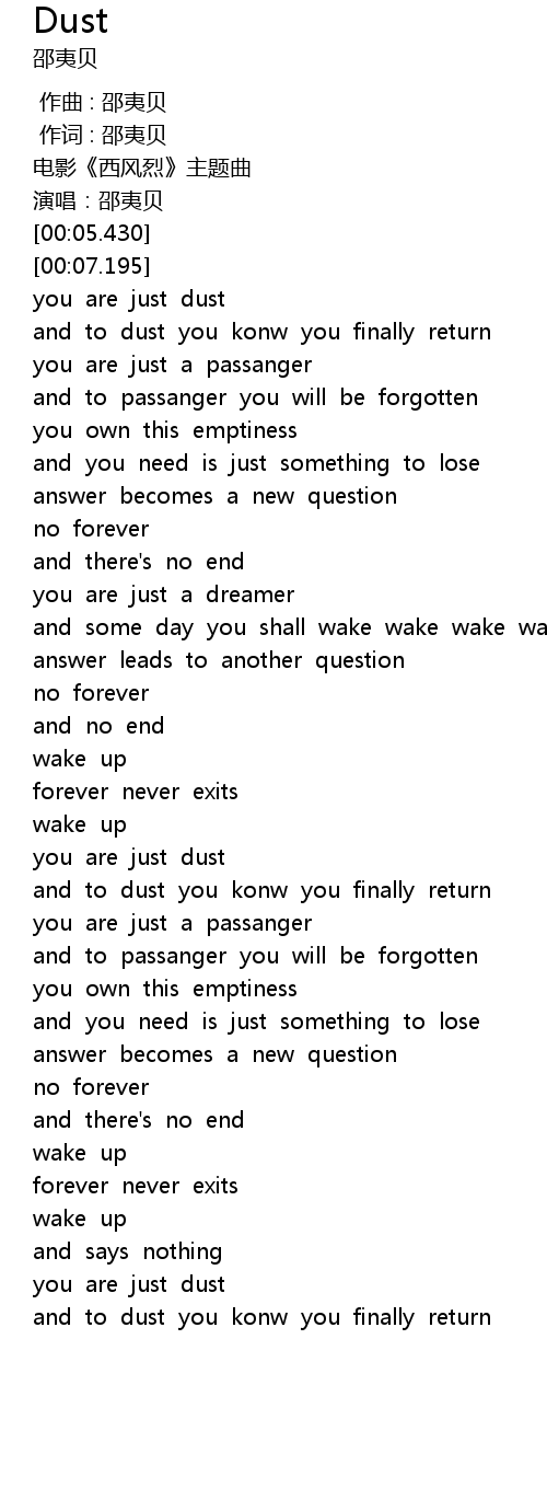 | [00:18.289] | you are just dust |
