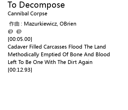 | [00:06.69] | Cadaver Filled Carcasses Flood The Land |