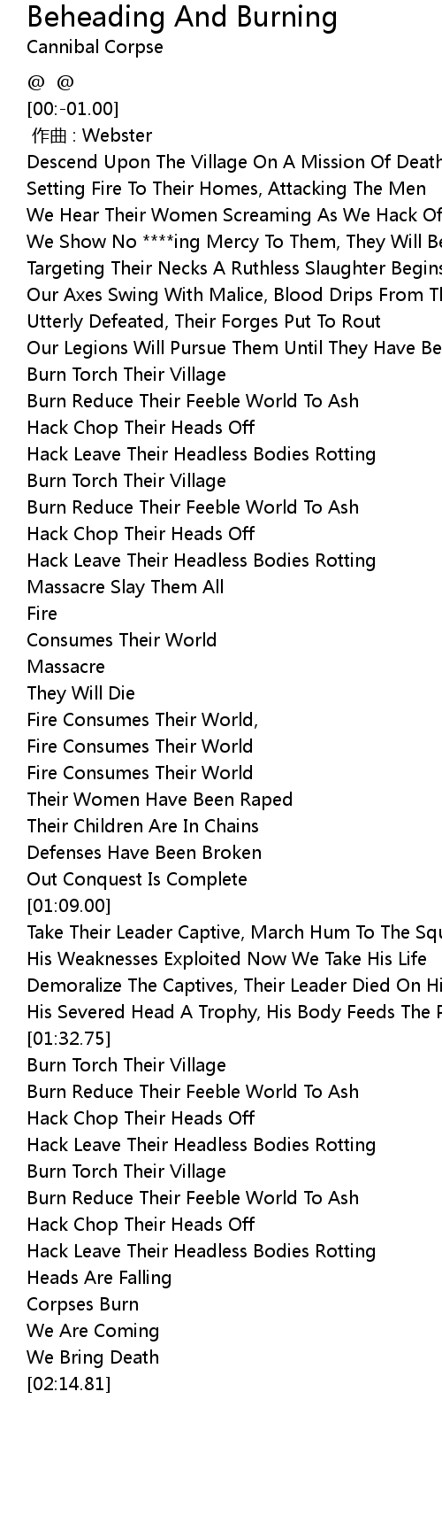 | [00:08.96] | We Hear Their Women Screaming As We Hack Off Their Heads |