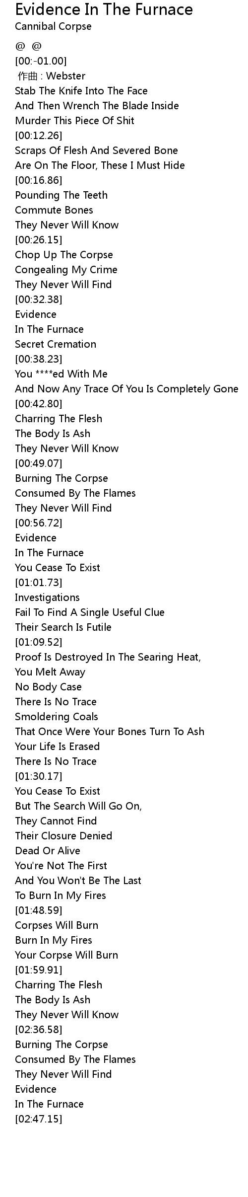 | [00:13.20] | Scraps Of Flesh And Severed Bone |