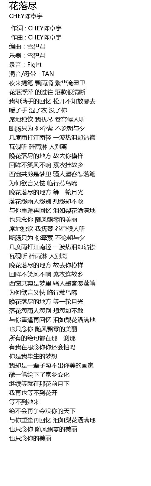| [00:00.000] | 作词 : CHEY陈卓宇 |