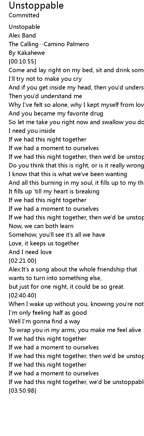 | [03:35.28] | If we had this night together, we'd be unstoppable |