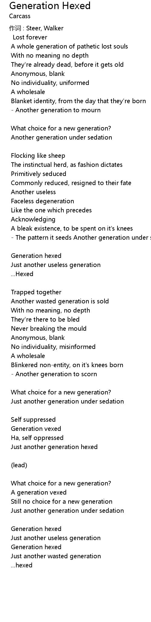 | - Another generation to scorn | |