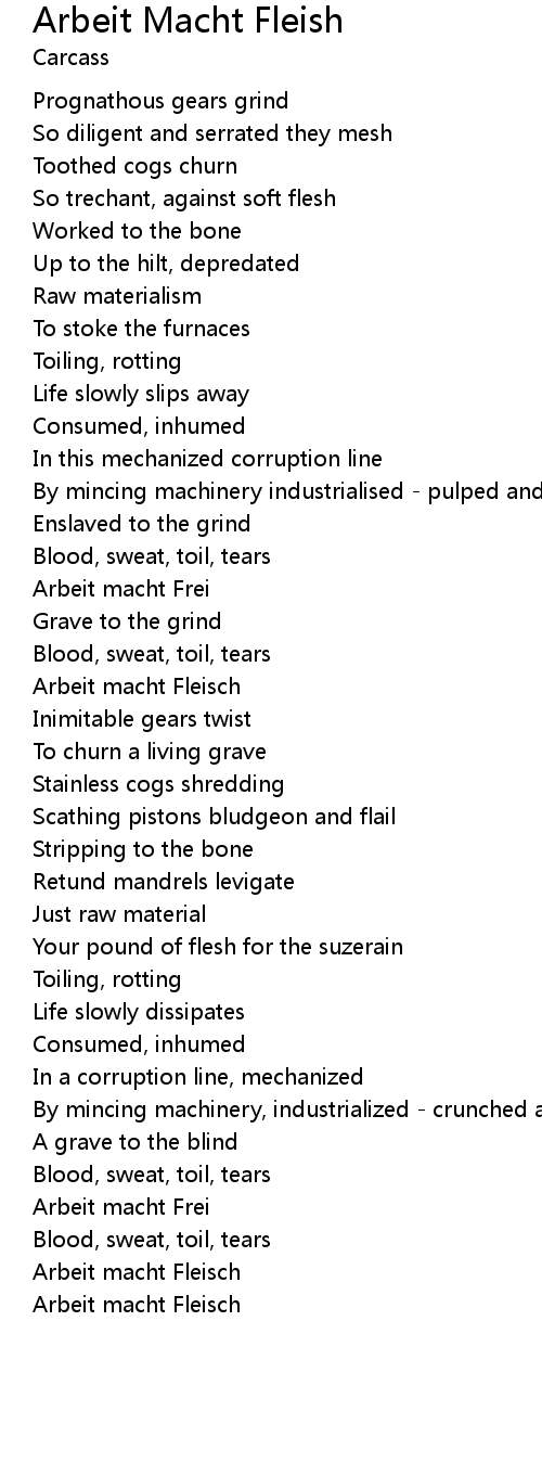 | [02:54.86] | By mincing machinery, industrialized - crunched and brutalised |
