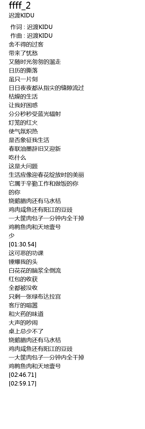 | [00:01.000] | 作曲 : 迟渡KIDU |