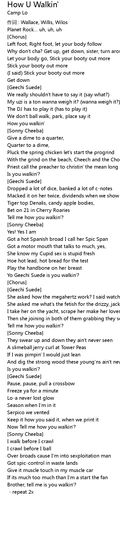 | Tell me how you walkin'? | |