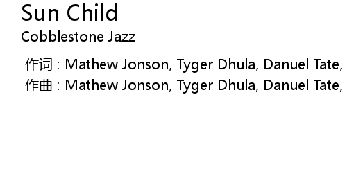 | [00:00.000] | zuò cí : Mathew Jonson, Tyger Dhula, Danuel Tate, Colin de la Plante |
