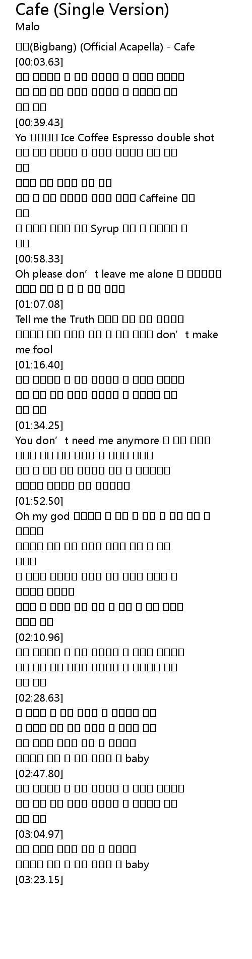 | [00:00.31] | 빅뱅(Bigbang) (Official Acapella) - Cafe |