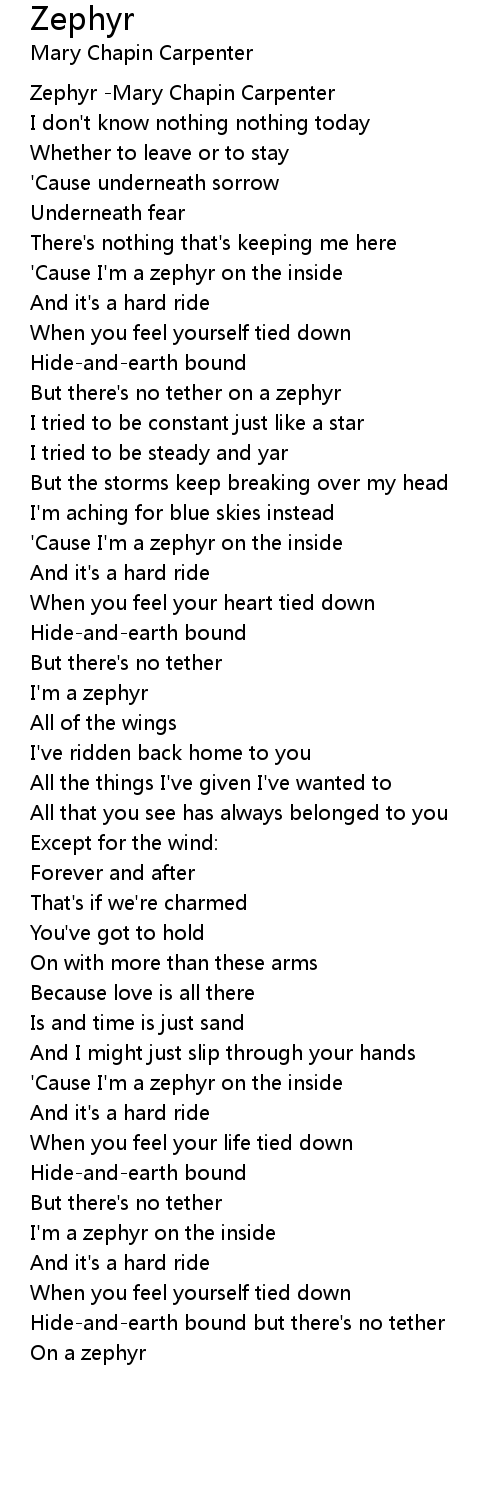 Zephyr -Mary Chapin Carpenter |