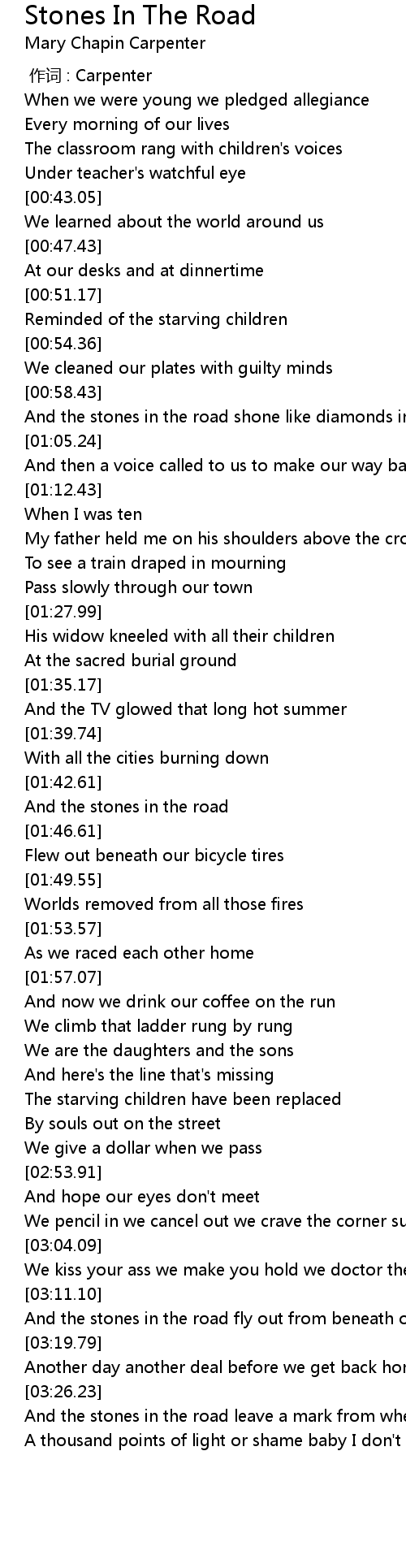 | [03:28.55] | And the stones in the road leave a mark from whence they came |