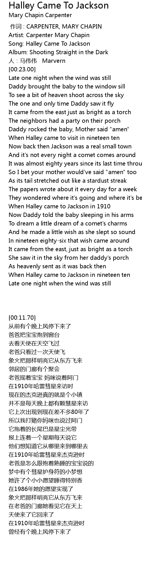| [00:00.00] | 作词 : CARPENTER, MARY CHAPIN |