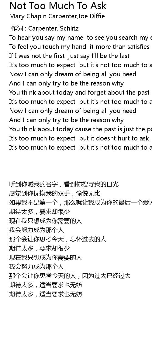 | [00:46.80] | It' s too much to expect but it' s not too much to ask |
