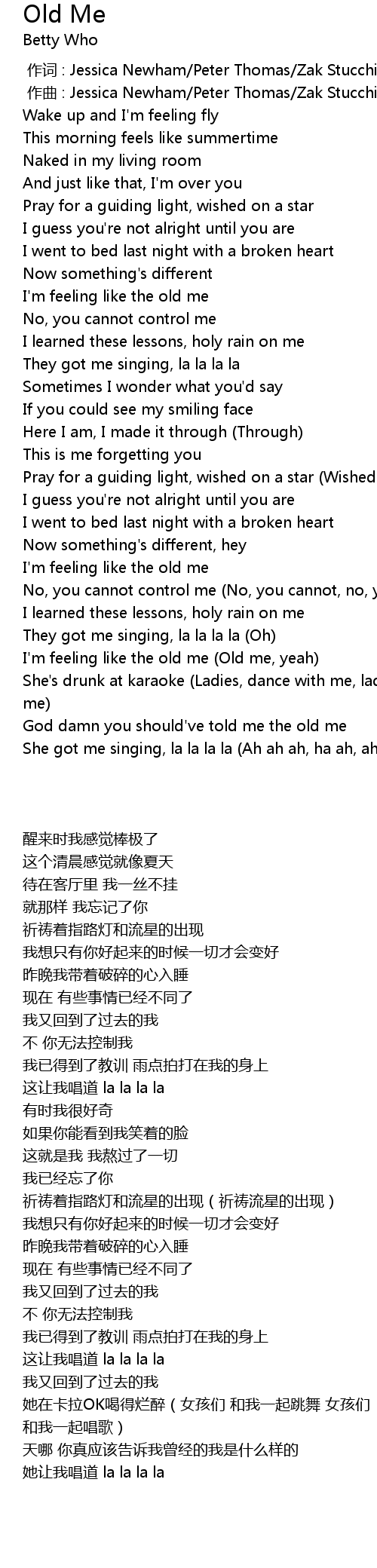 | [01:56.14] | I' m feeling like the old me Old me, yeah |