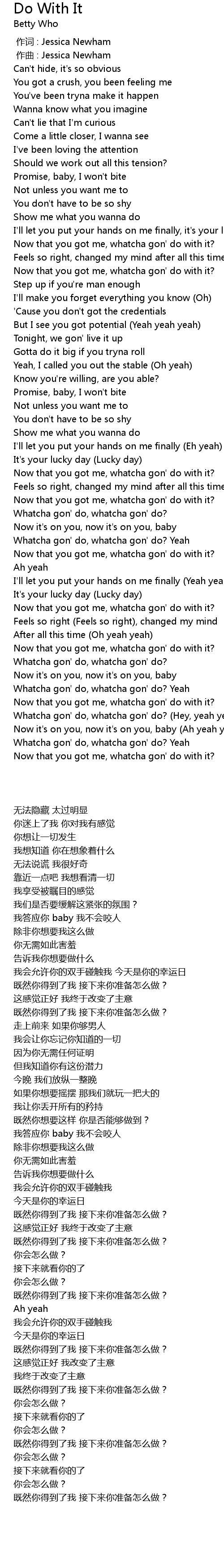 | [02:32.72] | Now that you got me, whatcha gon' do with it? |