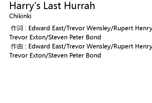 | [00:00.000] | 作词 : Edward East/Trevor Wensley/Rupert Henry James Browne/Simon Trevor Exton/Steven Peter Bond |