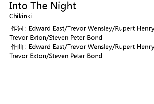 [00:00.000] 作词 : Edward East/Trevor Wensley/Rupert Henry James Browne/Simon Trevor Exton/Steven Peter Bond