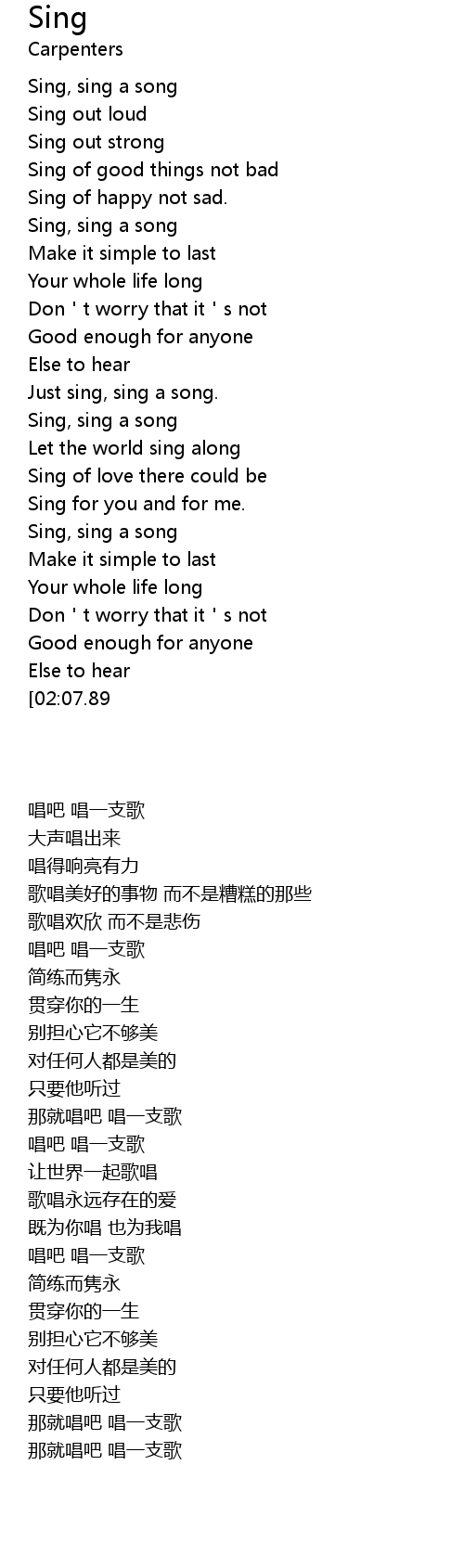 | [02:21.46][02:07.89] | Just sing, sing a song. |