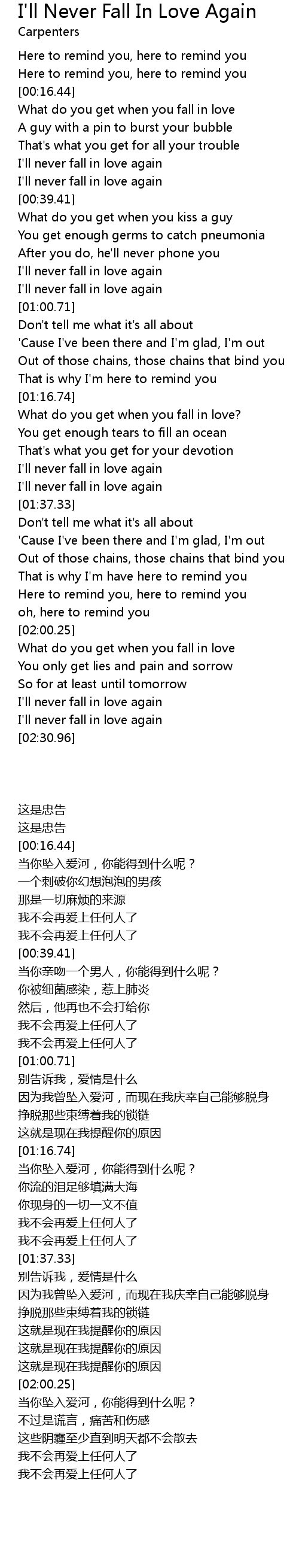 I'll never fall in love again |