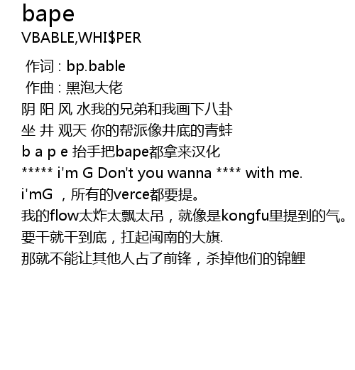 | [00:21.117] | b a p e tai shou ba bape dou na lai han hua |