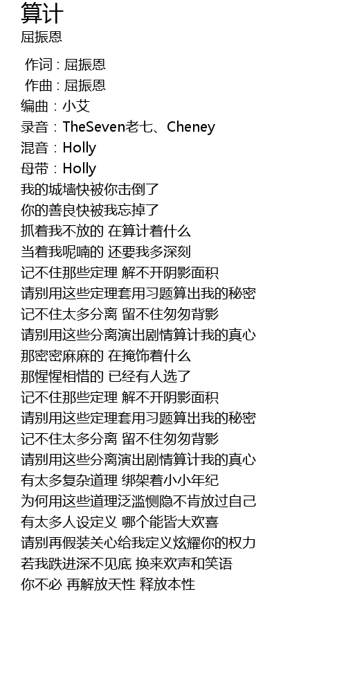 | [02:43.778] | 请别用这些分离演出剧情算计我的真心 |