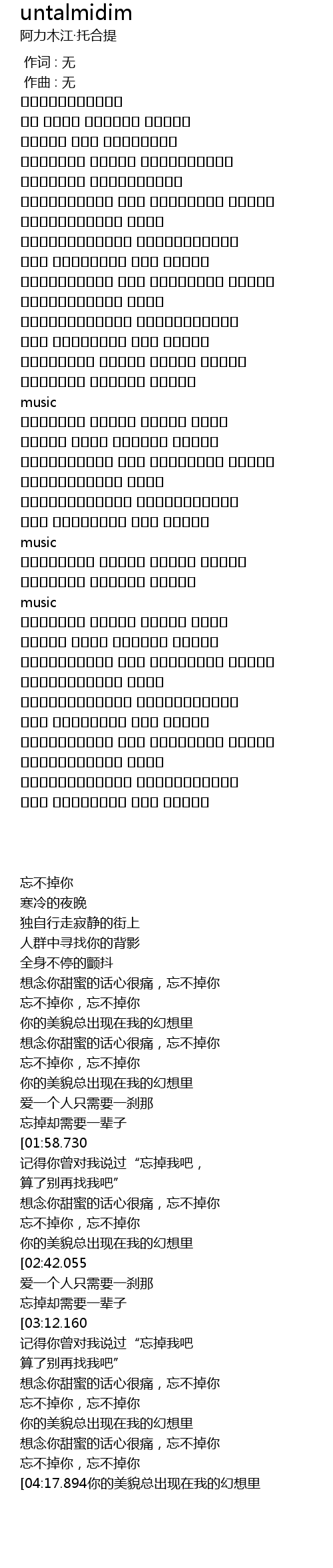 ئۇنتالمىدىم، ئۇنتالمىدىم |