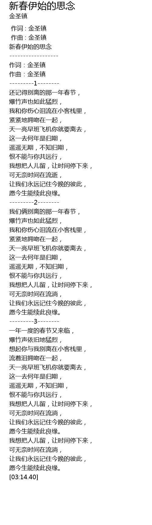 | [00:00.68] | xīn chūn yī shǐ de sī niàn |