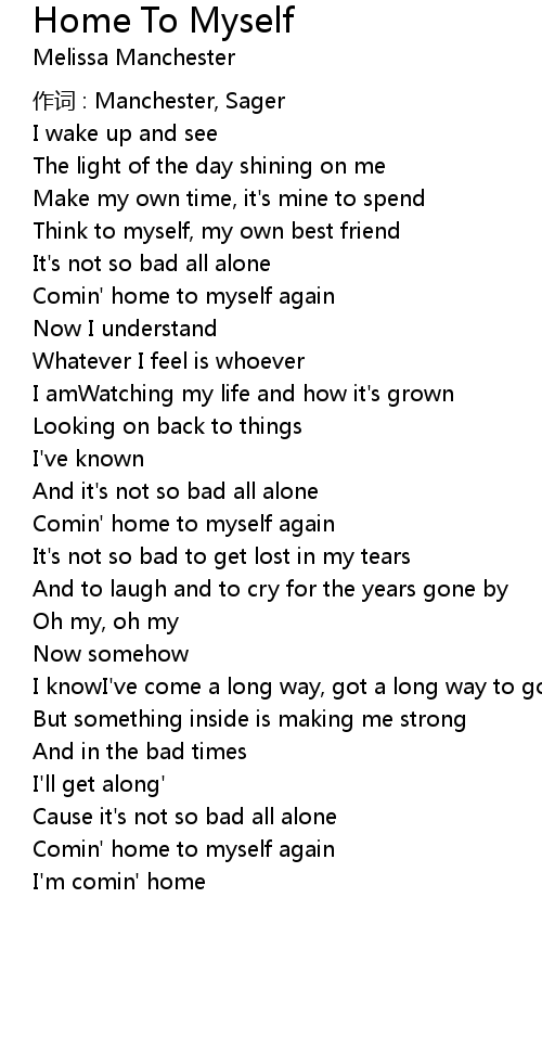 | Comin' home to myself again | |