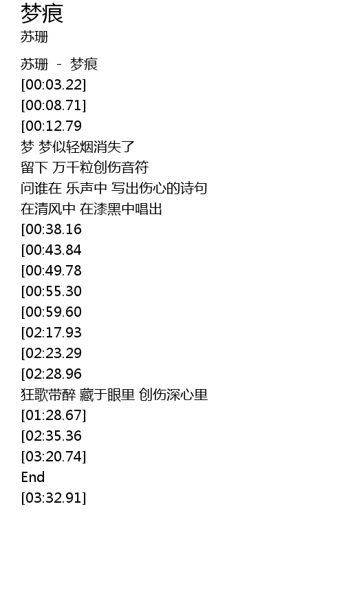 | [00:00.00] | 苏珊 - 梦痕 |