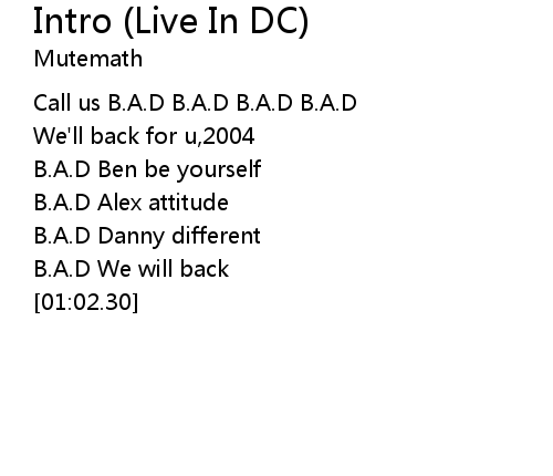 | [00:29.60] | Call us B.A.D B.A.D B.A.D B.A.D |
