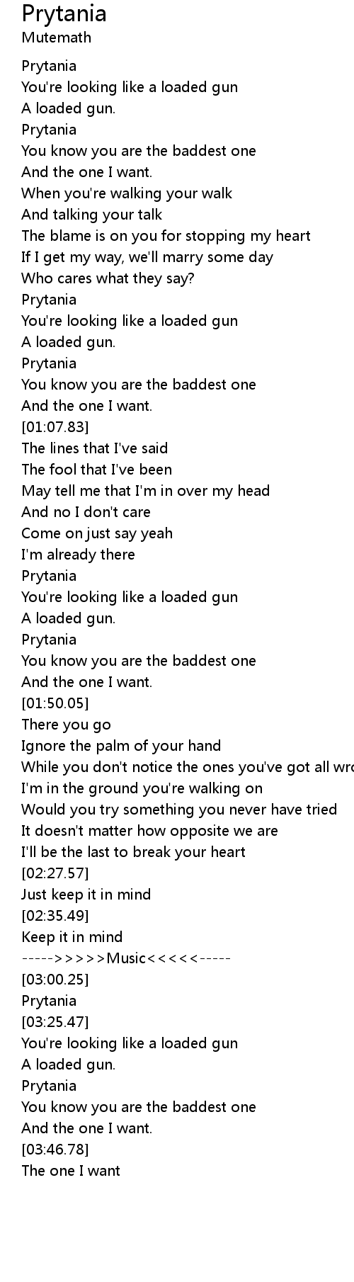 | [01:35.48] | You're looking like a loaded gun |